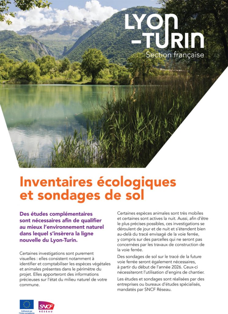 Dans le cadre du projet de la future ligne ferroviaire Lyon-Turin (section française), SNCF Réseau réalise actuellement des études écologiques et des sondages de sol sur notre territoire.