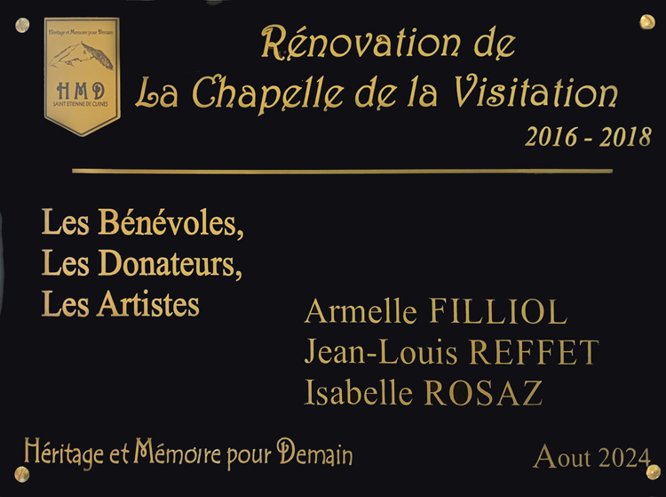 Ces travaux, entrepris et réalisés par l’association, se sont étalés de 2015 à 2023. Ils ont concerné l’extérieur, l’intérieur et les abords de la chapelle. Ils ont été menés par les bénévoles de l’association et les artistes qui ont su redonner à l’intérieur son éclat originel. Mentionnons aussi l’aide apportée par les généreux donateurs et le soutien de la municipalité.