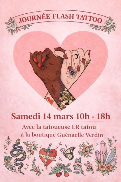 La boutique Guenaëlle Verdin et la tatoueuse LR Tatou vous invite à leur 3ème édition de la journée flash tatoo pour célébrer la Journée Femme.