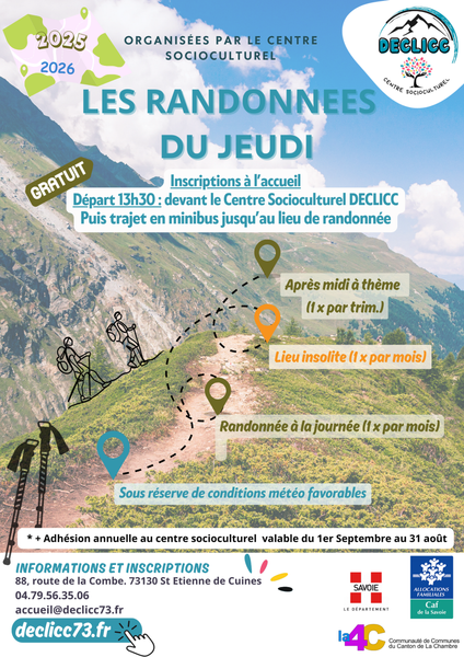Le centre socioculturel DECLICC organise des randonnées tous les jeudis.
